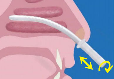 まず、DPスティックの鼻腔内での挿入方向を調整する基本的なテクニックを解説します。